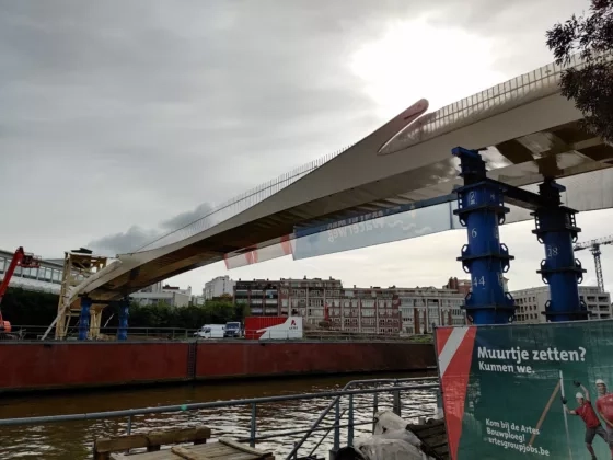 KUDU controleert de tijdelijke stabiliteit van het hulpstaal en de verschillende brugonderdelen tijdens het hijsen en samenbouwen van de nieuwe voetgangers- en fietsersbrug.